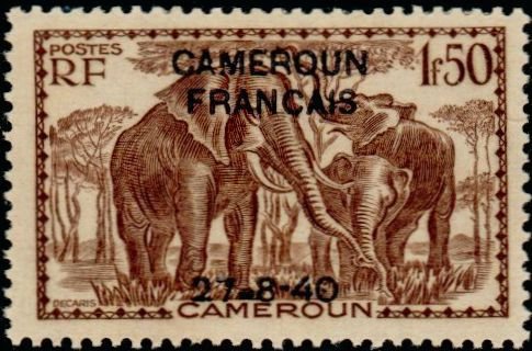 Visibility: public Image owner: none postage 1940 1.50fr brn issue=1940 d=elephants (1939) ovpt=CAMEROUN FRANCAIS//27.8.40 oc=blk on=issue=1939-1.50fr unwmk perf=13 Crops No visible images cropped from this one. Measurements Resolution is unknown. Source Source name: Colnect File URL: http://i.colnect.net/images/b/786/847/African-Elephant-Loxodonta-africana.jpg Uploaded August 18, 2014, 8:44 pm by Stan Shebs |
