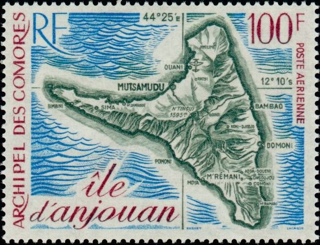 Visibility: public Image owner: none airmail 11/15/1972 100fr multi issue=Anjouan Landscapes d=Map of Anjouan unwmk perf=13 Crops No visible images cropped from this one. Measurements Resolution is unknown. Source Source name: Colnect File URL: http://i.colnect.net/images/b/791/296/Anjouan.jpg Uploaded August 18, 2014, 10:43 pm by Stan Shebs |