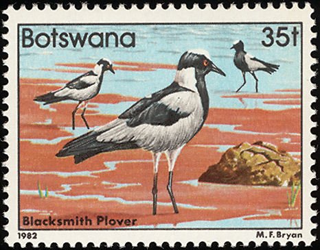 Visibility: public Image owner: none postage 7/1/1982 35t multi dt=birds (1982 Botswana) d=Blacksmith Plover (1982) unwmk perf=14x14.5 Crops No visible images cropped from this one. Measurements Resolution is unknown. Source Source name: Colnect File URL: http://i.colnect.net/b/597/749/Blacksmith-Lapwing-Hoplopterus-armatus-.jpg Uploaded August 18, 2014, 11:35 pm by Stan Shebs |