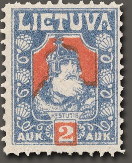 |   (266 x 329 pixels) | Type: stamp Issuer: Lithuania  Date: 1921 Denom: ? Visibility: public Image owner: none postage 2auk graybl&red issue=1921 d=Prince Kestutis wmk=wavy lines (Lithuania) perf=11.25 paper=thin white Crops No visible images cropped from this one. Measurements Resolution is unknown. Source Source name: Colnect File URL: http://i.colnect.net/b/447/654/Grand-Duke-Kestusis.jpg Uploaded August 20, 2014, 8:36 pm by Stan Shebs |