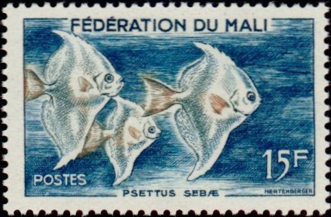 Visibility: public Image owner: none postage 3/5/1960 15fr dt=fishes (1960 Mali Federation) d=Psettus sebae unwmk Crops No visible images cropped from this one. Measurements Resolution is unknown. Source Source name: Colnect File URL: http://i.colnect.net/b/1049/705/African-Moony-Monodactylus-sebae.jpg Uploaded August 20, 2014, 11:20 pm by Stan Shebs |