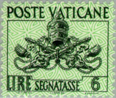 Visibility: public Image owner: none postage due 4/30/1954 6l blk&grn issue=1954 due wmk=crossed keys Crops No visible images cropped from this one. Measurements Resolution is unknown. Source Source name: Colnect File URL: http://i.colnect.net/b/152/063/Papal-coat-of-arms.jpg Uploaded October 4, 2012, 1:43 pm by Stan Shebs |
