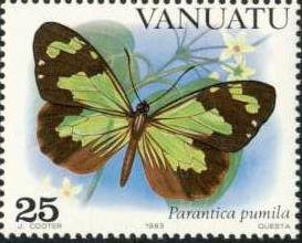 Visibility: public Image owner: none postage 1/18/1983 25v multi dt=butterflies (1983 Vanuatu) d=Parantica pumila wmk=crown & CA spiral Crops No visible images cropped from this one. Measurements Resolution is unknown. Source Source name: Colnect File URL: http://i.colnect.net/b/1230/403/Least-Tiger-Parantica-pumila.jpg Uploaded August 21, 2014, 1:51 pm by Stan Shebs |