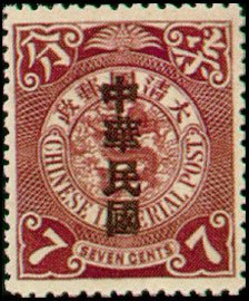 Visibility: public Image owner: none postage 7c brnvio issue=1912a dt=Imperial Chinese Post d=dragon (1898) ovpt=type1 oc=blk on=issue=1905-7c unwmk Crops No visible images cropped from this one. Measurements Resolution is unknown. Source Source name: Colnect File URL: http://i.colnect.net/b/1808/384/Coiling-Dragon-Sung-Characters-Republic-of-China-Overprinte.jpg Uploaded September 17, 2014, 7:11 pm by Stan Shebs |