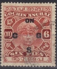 Type: stamp Issuer: Cochin Date: 1933 Denom: ?