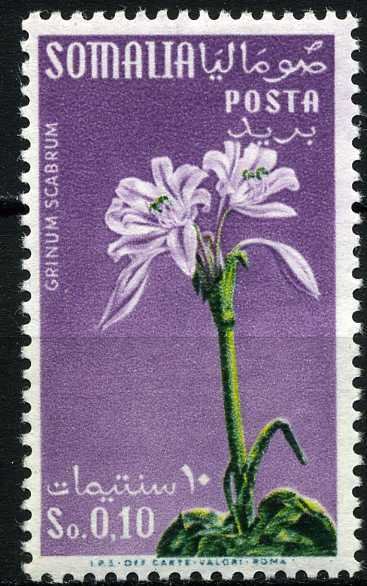 Visibility: public Image owner: none postage 2/1955 0,10so dt=flowers (1955 Somalia) d=Grinum scabrum wmk=winged wheel perf=13.5x13 Crops No visible images cropped from this one. Measurements Resolution is unknown. Source Source name: Colnect File URL: http://i.colnect.net/b/1550/383/Crinum-Lily-Crinum-scabrum.jpg Uploaded September 17, 2014, 10:15 pm by Stan Shebs |