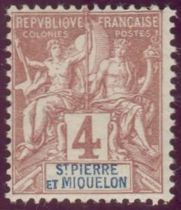 Type: stamp Issuer: St. Pierre & Miquelon Date: 1892 Denom: ?