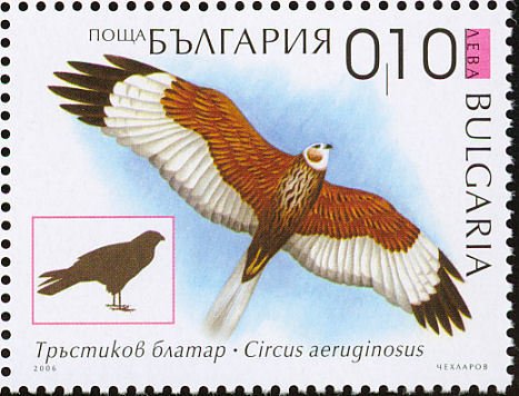 Visibility: public Image owner: none postage 5/9/2006 0.10l multi dt=birds (2006 Bulgaria) d=Circus aeruginosus (2006) unwmk perf=13.25x13 Crops No visible images cropped from this one. Measurements Resolution is unknown. Source Source name: Colnect File URL: http://i.colnect.net/b/1780/753/Western-Marsh-Harrier-Circus-aeruginosus.jpg Uploaded November 26, 2013, 8:35 pm by Stan Shebs |