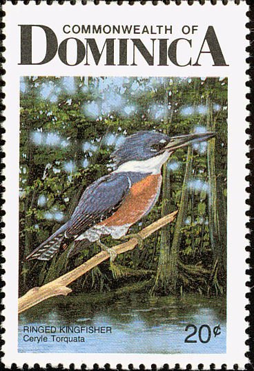 Visibility: public Image owner: none postage 1/20/1987 20c multi issue=1987 dt=birds of Dominica d=ringed kingfisher Ceryle torquata (1987) wmk=mult crown & script CA perf=15 Crops No visible images cropped from this one. Measurements Resolution is unknown. Source Source name: Colnect File URL: http://i.colnect.net/b/1788/018/Ringed-Kingfisher-Ceryle-torquata.jpg Uploaded December 5, 2013, 9:42 pm by Stan Shebs |