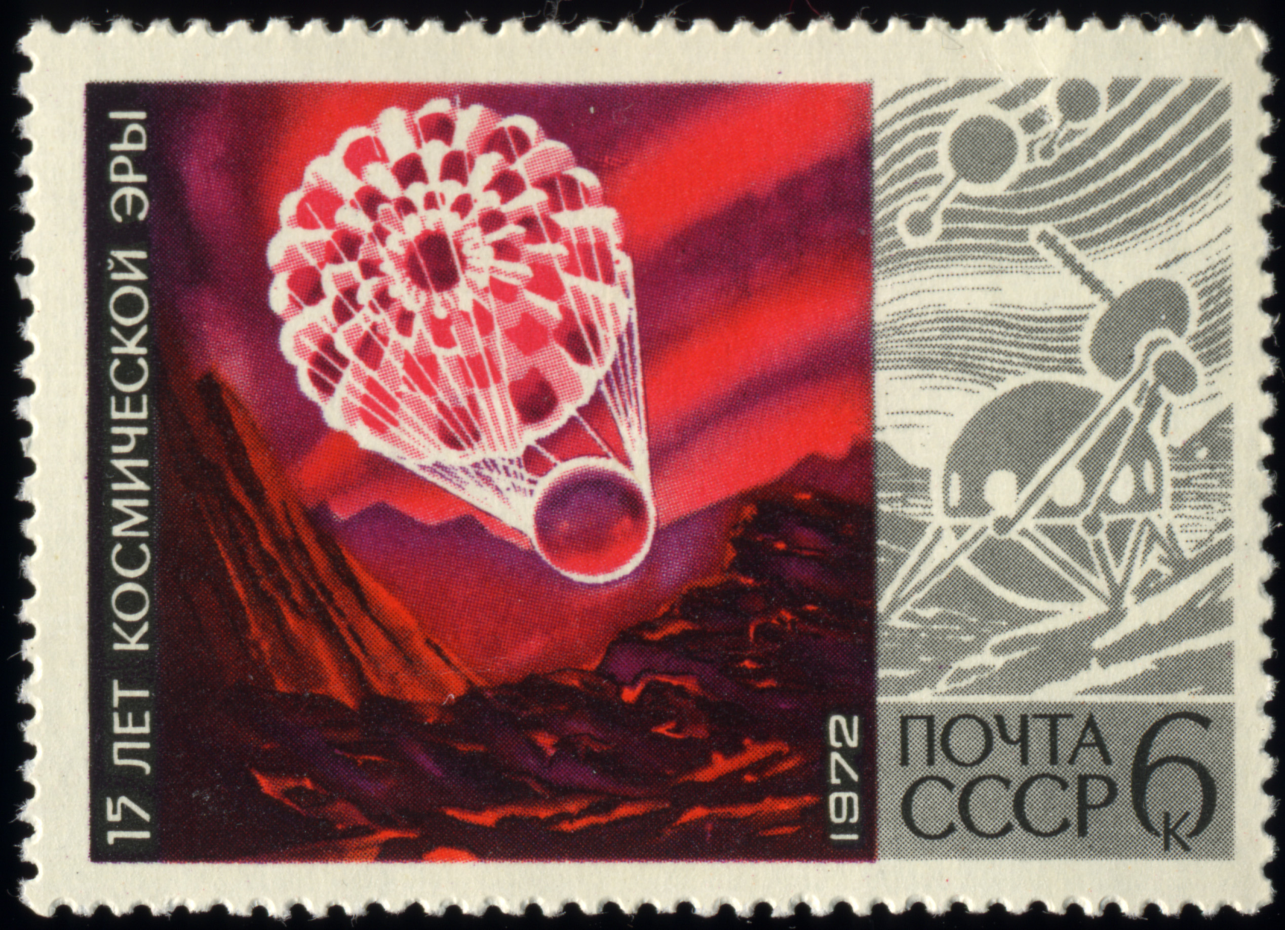 Visibility: public Image owner: none postage 9/14/1972 multi issue=Space Age 15th dt=spacecraft (1972) d=Venera 7 descending unwmk Crops No visible images cropped from this one. Measurements Resolution is unknown. Source Source name: Wikimedia Commons File URL: http://upload.wikimedia.org/wikipedia/commons/d/d7/Soviet_Union-1972-Stamp-0.06._15_Years_of_Space_Age._Venus.jpg Uploaded August 14, 2011, 3:54 am by Stan Shebs |
