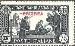 Visibility: public Image owner: none postage 75c blk issue=St Anthony ovpt=ERITREA oc=blk on=issuer=Italy-75c-blk Crops No visible images cropped from this one. Measurements Resolution is unknown. Source Source name: Colnect File URL: http://i.colnect.net/b/1642/019/Saint-Antonio.jpg Uploaded December 22, 2013, 5:06 am by Stan Shebs |