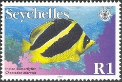 Visibility: public Image owner: none postage 11/3/2003 1r multi dt=fishes (2003 Seychelles) d=Indian Butterflyfish wmk=crown & CA spiral perf=14 Crops No visible images cropped from this one. Measurements Resolution is unknown. Source Source name: Colnect File URL: http://i.colnect.net/b/1705/006/Indian-Butterflyfish-Chaetodon-mitratus.jpg Uploaded December 27, 2013, 12:46 pm by Stan Shebs |