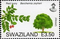 Visibility: public Image owner: none postage 1/23/2007 3.50e multi dt=trees of Swaziland d=Red Ivory (Berchemia zeyheri) unwmk Crops No visible images cropped from this one. Measurements Resolution is unknown. Source Source name: Colnect File URL: http://i.colnect.net/b/1696/653/Red-Ivory-Berchemia-zeyheri.jpg Uploaded December 28, 2013, 4:55 am by Stan Shebs |