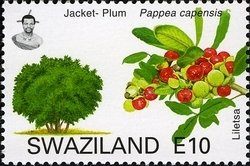 Visibility: public Image owner: none postage 1/23/2007 10e multi dt=trees of Swaziland d=Jacket Plum (Pappea capensis) unwmk Crops No visible images cropped from this one. Measurements Resolution is unknown. Source Source name: Colnect File URL: http://i.colnect.net/b/1696/655/Jacket-Plum-Pappea-capensis.jpg Uploaded December 28, 2013, 4:55 am by Stan Shebs |