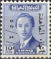 Visibility: public Image owner: none postage 4/6/1955 10f issue=Abrogation of Anglo-Iraqi Treaty d=King Faisal II (1954) ovpt=treaty abrogation oc=blk on=1954-10f unwmk perf=12 Crops No visible images cropped from this one. Measurements Resolution is unknown. Source Source name: Colnect File URL: http://i.colnect.net/images/b/1894/328/King-Faisal-II-1935-1958.jpg Uploaded January 4, 2014, 5:35 pm by Stan Shebs |