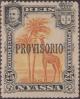 Nyassa 1903 25r blk&org d=giraffe & palms ovpt=PROVISORIO oc=blk on=1901-25r