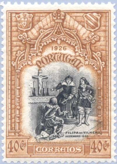 Visibility: public Image owner: none postage 8/13/1926 40c issue=First Independence d=Filipa de Vilhena Arms her Sons unwmk perf=14 Crops No visible images cropped from this one. Measurements Resolution is unknown. Source Source name: Colnect File URL: http://i.colnect.net/images/b/166/767/Filipa-de-Vilhena-Arms-her-Sons.jpg Uploaded October 14, 2012, 3:56 am by Stan Shebs |