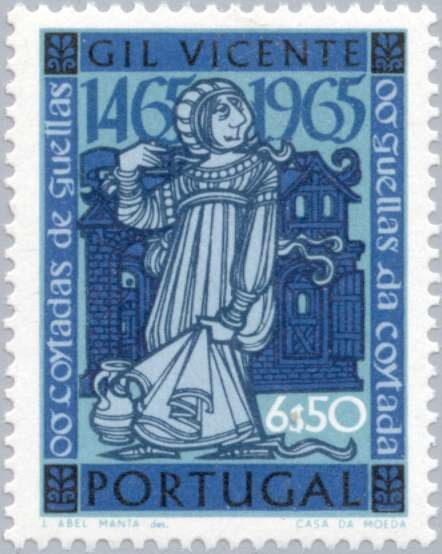 Visibility: public Image owner: none postage 12/1/1965 6.50e multi issue=Gil Vicente 500th unwmk Crops No visible images cropped from this one. Measurements Resolution is unknown. Source Source name: Colnect File URL: http://i.colnect.net/images/b/171/098/Figures-from-Gil-Vincente--s-Theatre-Plays.jpg Uploaded August 21, 2014, 9:23 pm by Stan Shebs |