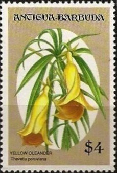 Visibility: public Image owner: none postage 3/15/1993 $4 multi dt=flora (1993 Antigua) d=Thevetia peruviana (1993) unwmk perf=14.25 Crops No visible images cropped from this one. Measurements Resolution is unknown. Source Source name: Colnect File URL: http://i.colnect.net/b/1987/977/Yellow-Oleander.jpg Uploaded May 13, 2014, 5:20 pm by Stan Shebs |