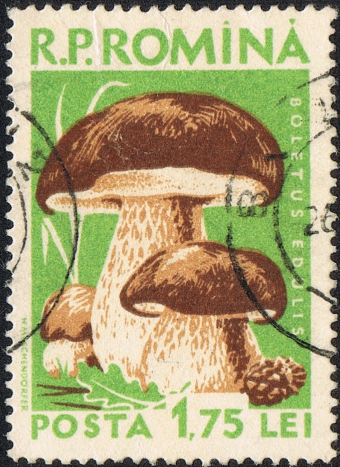 Visibility: public Image owner: none postage 7/1958 multi dt=mushrooms (1958 Romania) d=Boletus edulis (1958) unwmk perf=14 Crops No visible images cropped from this one. Measurements Resolution is unknown. Source Source name: Wikimedia Commons File URL: https://upload.wikimedia.org/wikipedia/commons/b/b1/Posta_Romana_-_1958_-_mushroom_1%2C75LEI.jpg Uploaded September 3, 2011, 3:12 am by Stan Shebs |