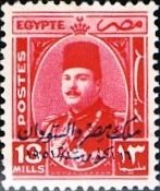 Visibility: public Image owner: none postage 1/17/1952 13m rosered issue=King of Egypt and the Sudan d=King Farouk (1944) ovpt=King...(arabic) oc=blk on=issue=1944-13m-rosered wmk=triple crescent & star perf=13x13.5 Crops No visible images cropped from this one. Measurements Resolution is unknown. Source Source name: Colnect File URL: http://i.colnect.net/images/b/1281/992/King-Farouk-with-overprint.jpg Uploaded August 22, 2014, 4:35 pm by Stan Shebs |
