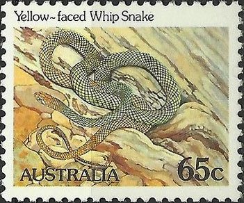 Visibility: public Image owner: none postage 7/1/1981 65c issue=1981 d=Whip Snake unwmk perf=12.75 Crops No visible images cropped from this one. Measurements Resolution is unknown. Source Source name: Colnect File URL: http://i.colnect.net/b/1993/381/Yellow-faced-Whip-Snake-Demansia-reticulata.jpg Uploaded August 11, 2014, 4:23 pm by Stan Shebs |