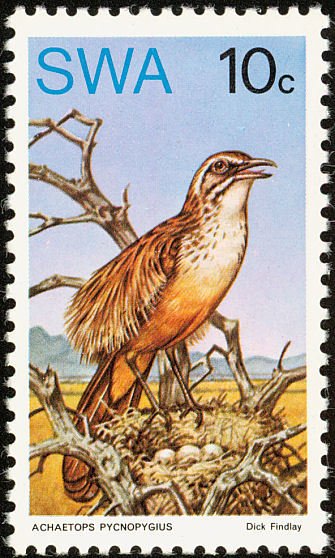 Visibility: public Image owner: none postage 2/13/1974 10c multi dt=native birds (1974) d=Achaetops pycnopygius wmk=RSA in triangle Crops No visible images cropped from this one. Measurements Resolution is unknown. Source Source name: Colnect File URL: http://i.colnect.net/b/2287/608/Rockrunner-Achaetops-pycnopygius.jpg Uploaded October 27, 2014, 3:58 pm by Stan Shebs |