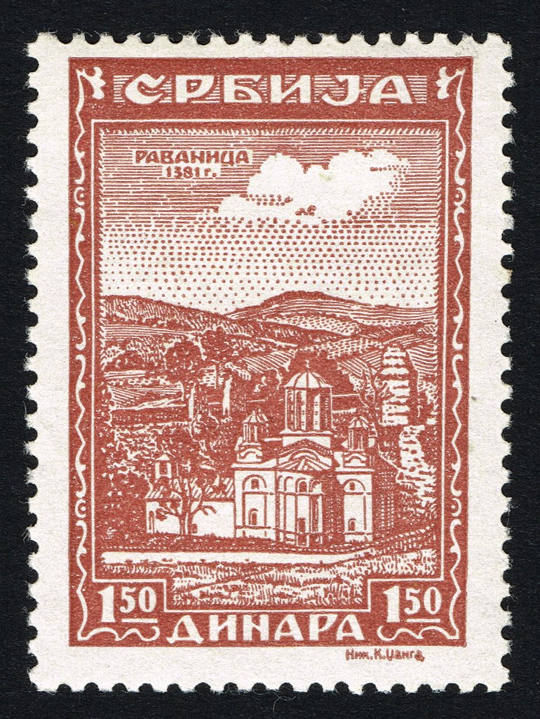 Visibility: public Image owner: none postage 1.50d redbrn issue=1942 dt=scenic (1942 German occupation of Serbia) d=Ravanica Monastery Crops No visible images cropped from this one. Measurements Resolution is unknown. Source Source name: Colnect File URL: http://i.colnect.net/images/b/2200/301/Ravanica-Monastery.jpg Uploaded November 17, 2014, 10:36 pm by Stan Shebs |