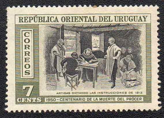 Visibility: public Image owner: none postage 1/7/1952 7c ol&blk issue=Artigas death 100th wmk=REPUBLICA O. DEL URUGUAY Crops No visible images cropped from this one. Measurements Resolution is unknown. Source Source name: Colnect File URL: http://i.colnect.net/b/2217/203/Gen-Artigas-dictating-instructions-in-1813.jpg Uploaded November 18, 2014, 4:33 am by Stan Shebs |