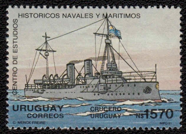 Visibility: public Image owner: none postage 10/4/1991 1570np multi issue=Centre for Study of Naval and Maritime History d="Uruguay", Cruiser wmk=large sun & ROU Crops No visible images cropped from this one. Measurements Resolution is unknown. Source Source name: Colnect File URL: http://i.colnect.net/b/2220/151/Cruiser-Uruguay.jpg Uploaded November 18, 2014, 5:12 am by Stan Shebs |