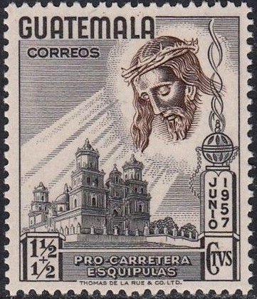 Visibility: public Image owner: none airmail semipostal 11/25/1957 1 1/2c+1/2c grayblk&brn issue=Esquipulas Highway Fund unwmk Crops No visible images cropped from this one. Measurements Resolution is unknown. Source Source name: Colnect File URL: http://i.colnect.net/images/b/2266/938/Jesus-and-Esquipulas-Cathedral.jpg Uploaded February 17, 2015, 5:19 pm by Stan Shebs |