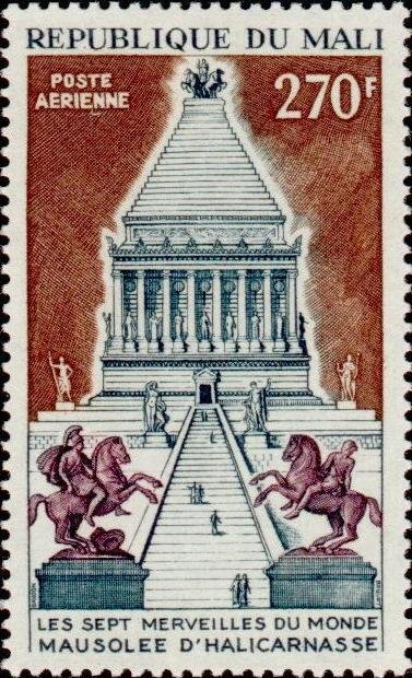 Visibility: public Image owner: none airmail 12/13/1971 270fr multi issue="The Seven Wonders of the Ancient World" unwmk perf=13 Crops No visible images cropped from this one. Measurements Resolution is unknown. Source Source name: Colnect File URL: http://i.colnect.net/images/b/2367/734/Mausoleum-at-Halicarnassus.jpg Uploaded February 18, 2015, 5:28 pm by Stan Shebs |