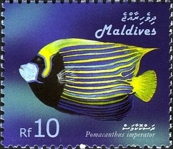 Visibility: public Image owner: none postage 11/1/2006 10r multi dt=fishes (2006 Maldive Islands) d=Pomacanthus imperator (2006) unwmk perf=12 Crops No visible images cropped from this one. Measurements Resolution is unknown. Source Source name: Colnect File URL: http://i.colnect.net/images/b/2362/899/Emperor-Angelfish-Pomacanthus-imperator.jpg Uploaded May 26, 2015, 10:15 pm by Stan Shebs |