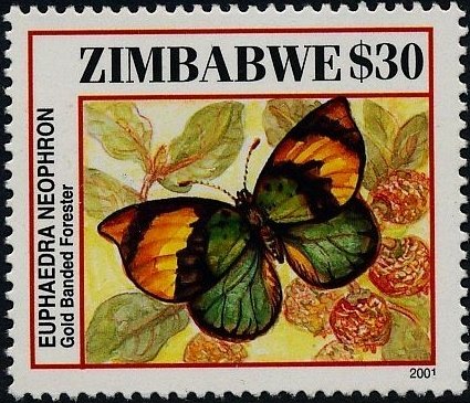 Visibility: public Image owner: none postage 12/6/2001 $30 multi dt=butterflies (2001 Zimbabwe) d=Euphaedra neophron (2001 Zimbabwe) unwmk perf=14.25 Crops No visible images cropped from this one. Measurements Resolution is unknown. Source Source name: Colnect File URL: http://i.colnect.net/b/2480/991/Gold-banded-Forester-Euphaedra-neophron.jpg Uploaded June 19, 2015, 2:21 pm by Stan Shebs |