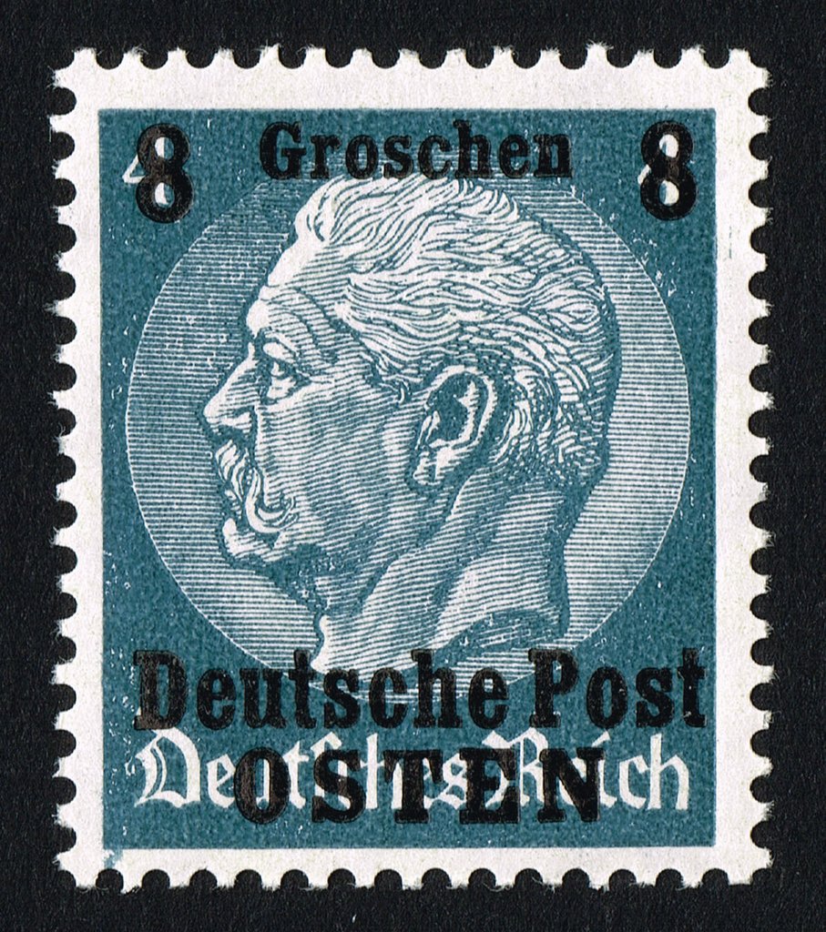 Visibility: public Image owner: none postage 12/1/1939 8g prusbl d=Hindenburg (profile) ovpt=value//Deutsche Post//OSTEN oc=blk on=issuer=Germany-issue=1933 swastikas-4pf wmk=swastikas perf=14 Crops No visible images cropped from this one. Measurements Resolution is unknown. Source Source name: Colnect File URL: http://i.colnect.net/b/2200/756/Overprint-OSTEN-Over-Hindenburg.jpg Uploaded July 11, 2015, 6:58 pm by Stan Shebs |