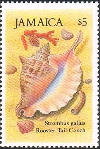 Visibility: public Image owner: none postage 2/23/1987 $5 multi dt=shells (1986 Jamaica) d=Rooster tail conch wmk=Multiple "J" & Pineapple perf=15 Crops No visible images cropped from this one. Measurements Resolution is unknown. Source Source name: Colnect File URL: http://i.colnect.net/b/2651/922/Rooster-tailed-Conch-Strombus-gallus.jpg Uploaded July 15, 2015, 8:02 pm by Stan Shebs |