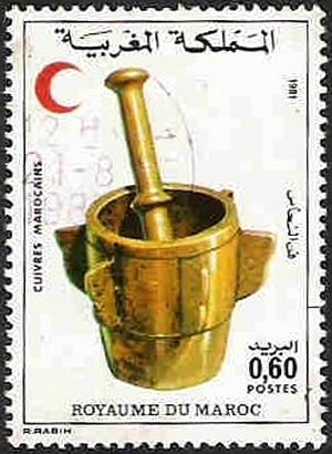 Visibility: public Image owner: none postage 9/24/1981 0.60dh multi issue=Red Crescent 1981 dt=Moroccan Copperware unwmk perf=14 Crops No visible images cropped from this one. Measurements Resolution is unknown. Source Source name: Colnect File URL: http://i.colnect.net/b/2461/136/Copper-mortar.jpg Uploaded July 31, 2015, 5:59 pm by Stan Shebs |