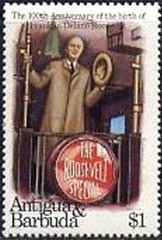 Visibility: public Image owner: none postage 9/20/1982 $1 multi issue=100th birthday of Franklin D. Roosevelt / 250th birthday of George Washington d=Roosevelt wmk=St Edwards crown & CA perf=15 Crops No visible images cropped from this one. Measurements Resolution is unknown. Source Source name: Colnect File URL: http://i.colnect.net/b/1940/876/Roosevelt.jpg Uploaded September 1, 2015, 8:04 pm by Stan Shebs |