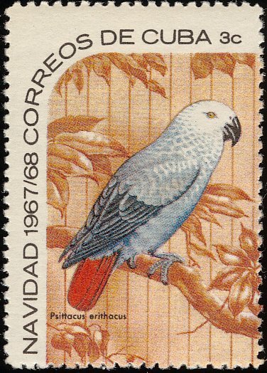 Visibility: public Image owner: none postage 12/20/1967 3c multi issue=Christmas 1967 dt=birds of Havana Zoo d=Psittacus erithacus (1967) unwmk perf=12.5 Crops No visible images cropped from this one. Measurements Resolution is unknown. Source Source name: Colnect File URL: http://i.colnect.net/b/2509/018/African-Grey-Parrot-Psittacus-erithacus.jpg Uploaded September 14, 2015, 4:48 pm by Stan Shebs |