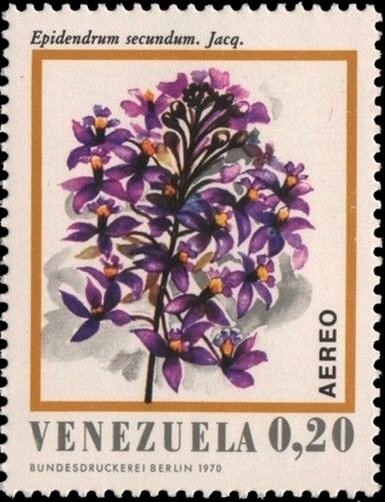 Visibility: public Image owner: none airmail 7/29/1970 0.20b multi dt=flowers (1970 Venezuela) d=Epidendrum secundum (1970) unwmk perf=14.25x13.75 Crops No visible images cropped from this one. Measurements Resolution is unknown. Source Source name: Colnect File URL: http://i.colnect.net/b/2687/009/Epidendrum-secundum.jpg Uploaded September 25, 2015, 2:53 pm by Stan Shebs |