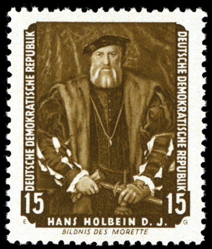 Visibility: public Image owner: none postage 6/26/1957 15pf olbrn dt=paintings in the Dresden Gallery d=Bildnis des Morette, by Hans Holbein d. J. Crops No visible images cropped from this one. Measurements Resolution is unknown. Source Source name: Colnect File URL: http://i.colnect.net/images/b/1970/468/H-Holbein-d-J.jpg Uploaded October 5, 2015, 1:02 am by Stan Shebs |