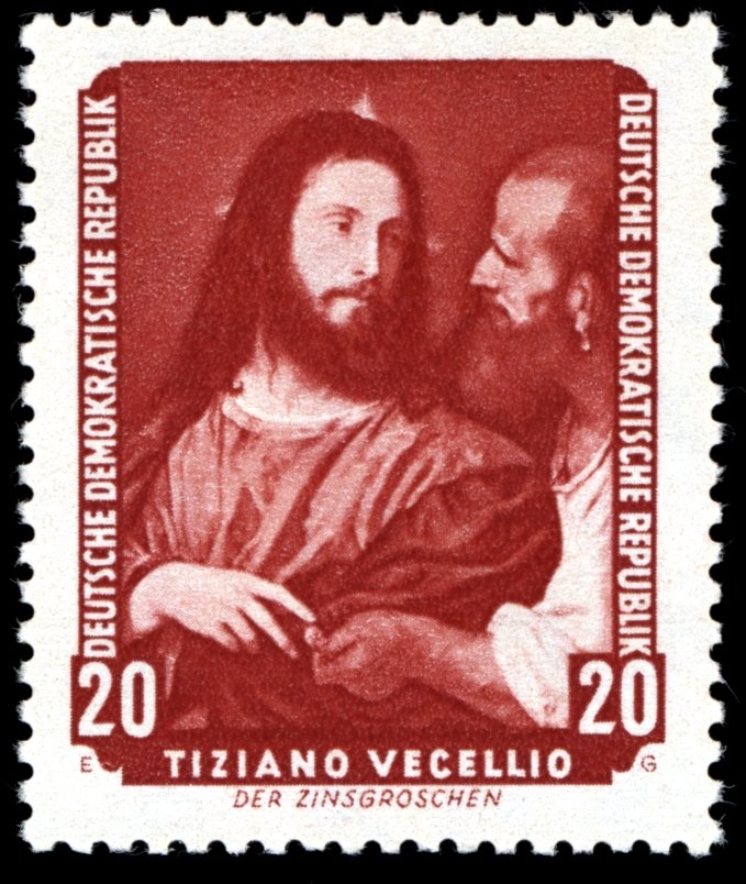 Visibility: public Image owner: none postage 6/26/1957 20pf brncar dt=paintings in the Dresden Gallery d=Der Zinsgroschen, by Tiziano Vecellio Crops No visible images cropped from this one. Measurements Resolution is unknown. Source Source name: Colnect File URL: http://i.colnect.net/images/b/1970/469/Tizian.jpg Uploaded October 5, 2015, 1:02 am by Stan Shebs |