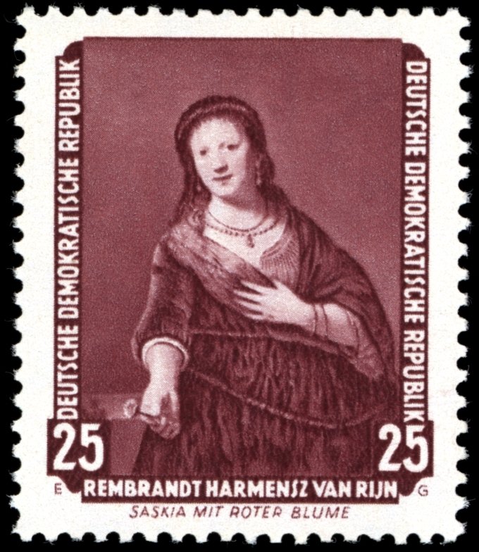 Visibility: public Image owner: none postage 6/26/1957 25pf brnvio dt=paintings in the Dresden Gallery d=Saskia mit roter Blume, by Rembrandt Harmensz van Rijn Crops No visible images cropped from this one. Measurements Resolution is unknown. Source Source name: Colnect File URL: http://i.colnect.net/images/b/1970/470/Rembrandt.jpg Uploaded October 5, 2015, 1:02 am by Stan Shebs |