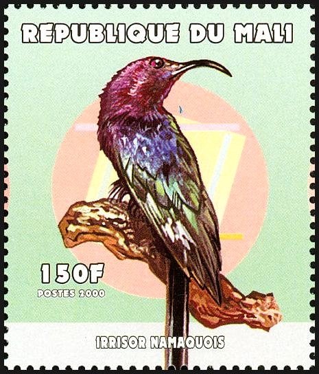Visibility: public Image owner: none postage 9/25/2000 150fr multi issue=Birds of the World dt=birds of the World (2000) d=Nectarinia sp. unwmk perf=13.25 Crops No visible images cropped from this one. Measurements Resolution is unknown. Source Source name: Colnect File URL: http://i.colnect.net/b/2606/925/Common-Scimitarbill-Rhinopomastus-cyanomelas.jpg Uploaded October 5, 2015, 7:23 pm by Stan Shebs |