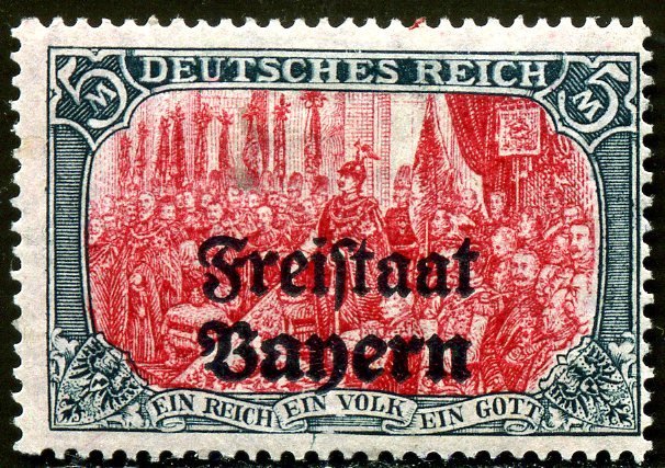 Visibility: public Image owner: none postage 5/17/1919 5m sl&car issue=1919c d=Wilhelm II speaking (Deutsches Reich) ovpt=Freistaat//Bayern(fraktur) oc=blk on=issuer=Germany-issue=1905-5m-sl&car wmk=lozenges perf=14x14.5 Crops No visible images cropped from this one. Measurements Resolution is unknown. Source Source name: Colnect File URL: http://i.colnect.net/b/2210/503/Freistaat-on--quot-Germania-quot-.jpg Uploaded October 22, 2015, 1:49 am by Stan Shebs |