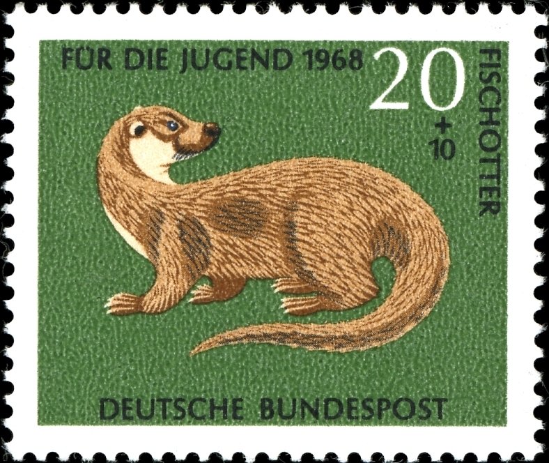 Visibility: public Image owner: none semipostal 2/2/1968 20+10(pf) multi issue=youth 1968 dt=animals (1968 Germany) d=otter unwmk Crops No visible images cropped from this one. Measurements Resolution is unknown. Source Source name: Colnect File URL: http://i.colnect.net/b/2845/172/Eurasian-Otter-Lutra-lutra.jpg Uploaded November 11, 2015, 5:11 pm by Stan Shebs |