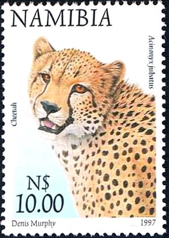 Visibility: public Image owner: none postage 11/3/1997 $10.00 multi issue=1997 dt=flora and fauna (1997 Namibia) d=Acinonyx jubatus (1997 Namibia) unwmk Crops No visible images cropped from this one. Measurements Resolution is unknown. Source Source name: Colnect File URL: http://i.colnect.net/b/2221/696/Cheetah-Acinonyx-jubatus.jpg Uploaded November 16, 2015, 5:37 pm by Stan Shebs |