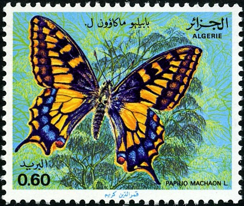 Visibility: public Image owner: none postage 8/20/1981 0,60d multi dt=butterflies (1981 Algeria) d=Papilio machaon (1981) unwmk Crops No visible images cropped from this one. Measurements Resolution is unknown. Source Source name: Colnect File URL: http://i.colnect.net/b/2561/481/Swallowtail-Papilio-machaon.jpg Uploaded May 2, 2016, 8:13 pm by Stan Shebs |