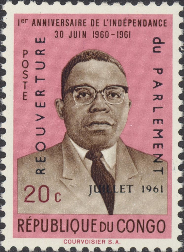 Visibility: public Image owner: none postage 7/31/1961 20c issue=parliament reopening d=Kasavubu ovpt=REOUVERTURE//... oc=blk on=issue=independence 1st-20c unwmk Crops No visible images cropped from this one. Measurements Resolution is unknown. Source Source name: Colnect File URL: http://i.colnect.net/images/b/2697/220/President-Kasavubu-with-overprint.jpg Uploaded May 31, 2016, 4:26 pm by Stan Shebs |