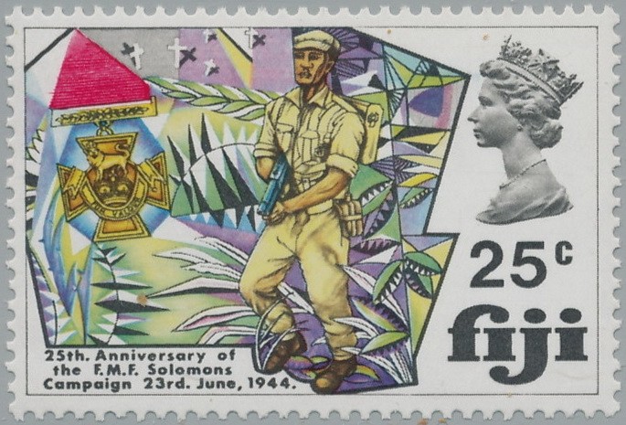 Visibility: public Image owner: none postage 6/23/1969 25c multi issue=Fiji Military Forces campaign d=soldier & medal wmk=mult crown & script CA perf=14 Crops No visible images cropped from this one. Measurements Resolution is unknown. Source Source name: Colnect File URL: http://i.colnect.net/images/b/2650/123/Soldier-and-Medal.jpg Uploaded June 7, 2016, 2:52 pm by Stan Shebs |